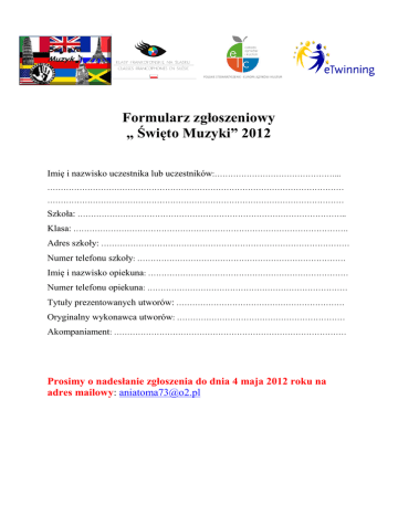 Formularz zgłoszeniowy „ Święto Muzyki” 2012