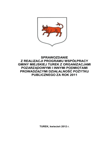SPRAWOZDANIE Z REALIZACJI PROGRAMU WSPÓŁPRACY GMINY MIEJSKIEJ TUREK Z ORGANIZACJAMI POZARZĄDOWYMI I INNYMI PODMIOTAMI PROWADZĄCYMI DZIAŁALNOŚĆ POŻYTKU PUBLICZNEGO ZA ROK 2011 TUREK, kwiecień 2012 r. Wstęp Program współpracy Gminy Miejskiej Turek z organizacjami pozarządowymi i innymi podmiotami prowadzącymi działalność pożytku publicznego na rok 2011 został przyjęty Uchwałą Nr III/21/10 Rady Miejskiej Turku z dnia 30 grudnia 2010 r. w sprawie przyjęcia Programu współpracy Gminy Miejskiej Turek z organizacjami pozarządowymi i innymi podmiotami prowadzącymi działalność pożytku publicznego na rok 2011. Celem głównym współpracy miasta z organizacjami była poprawa jakości życia oraz pełniejsze zaspakajanie potrzeb społecznych mieszkańców miasta poprzez stwarzanie im możliwości i warunków do uczestnictwa w życiu publicznym, zwłaszcza poprzez: promowanie społeczeństwa obywatelskiego, coraz lepsze poznawanie i diagnozowanie środowisk organizacji działających na terenie miasta, integrację organizacji prowadzących działalności obejmującą swym zakresem sferę zadań publicznych wymienionych w art.4 ustawy, otwarcie na innowacyjność oraz konkurencyjność poprzez umożliwienie organizacjom wystąpienia z ofertą realizacji konkretnych zadań publicznych, tworzenie warunków do wzmacniania rozwoju istniejących oraz powstawania nowych organizacji, zapewnienie efektywnego wykonywania zadań publicznych gminy przez włączenie do ich realizacji organizacji pozarządowych. Współpraca z sektorem pozarządowym oparta była na zasadach: 1) pomocniczości i suwerenności stron, w myśl której miasto respektowało odrębność i suwerenność zorganizowanych wspólnot obywateli, uznawało ich prawo do samodzielnego definiowania i rozwiązywania problemów, w tym należących także do sfery zadań publicznych i w takim zakresie współpracując z organizacjami, a także wspierając ich działalność oraz umożliwiając realizację zadań publicznych na zasadach i w formie określonej w ustawie; 2) partnerstwa, według której miasto traktowało organizacje jako równoprawnych partnerów w definiowaniu problemów społecznych, określaniu sposobów ich rozwiązywania oraz realizacji zadań publicznych, przez co oczekiwało od organizacji aktywnego uczestnictwa w realizacji form wynikających ze współpracy; 3) efektywności, efektywnego w myśl sposobu której miasto realizacji zadań 2 dokonywało publicznych wyboru najbardziej przez organizacje, oczekując od organizacji sporządzania ofert zgodnie z wymaganiami przedstawionymi w specyfikacji zadania, rzetelnej realizacji powierzonych zadań, wywiązywania się z obowiązków rozliczenia finansowego i sprawozdawczości; 4) uczciwej konkurencji, według której miasto równorzędnie traktowało organizacje przy realizacji zadań publicznych, ogłaszając w tym samym czasie takie same założenia określające zadanie oraz stosując takie same kryteria oceny zgłoszonych ofert konkurujących organizacji; 5) jawności, według której miasto dążyło do tego, aby wszelkie możliwości współpracy z organizacjami były powszechnie wiadome i dostępne oraz jasne i zrozumiałe w zakresie stosowanych procedur i kryteriów podejmowania decyzji, jak również w obszarze zamiarów, celów i środków przeznaczonych na realizację zadań publicznych. PRZEDMIOT WSPÓŁPRACY W roku 2011 przedmiotem współpracy miasta z organizacjami były ustawowe zadania własne miasta w sferze zadań publicznych w art. 4 ustawy o działalności pożytku publicznego i o wolontariacie, wspólne określenie ważnych dla mieszkańców miasta potrzeb i tworzenie wspólnych rozwiązań problemów społecznych, konsultowanie z organizacjami projektów aktów normatywnych w dziedzinach dotyczących działalności statutowej tych organizacji. miasta z organizacjami pozarządowymi była Przedmiotem współpracy realizacja zadań publicznych w szczególności w zakresie: 1) pomocy społecznej, w tym pomocy rodzinom i osobom w trudnej sytuacji życiowej oraz wyrównywania szans tych rodzin i osób, 2) ochrony zdrowia i promocji zdrowia, 3) działań na rzecz osób niepełnosprawnych, 4) działalności wspomagającej rozwój gospodarczy, przedsiębiorczości, 5) wypoczynku dzieci i młodzieży, 6) nauki, edukacji, oświaty i wychowania, 7) kultury, sztuki, ochrony dóbr kultury i tradycji, 3 w tym rozwój 8) wspierania i upowszechniania kultury fizycznej, 9) promocji i organizacji wolontariatu, 10) przeciwdziałania uzależnieniom i patologiom społecznym. FORMY WSPÓŁPRACY Samorząd miasta Turku w roku 2011 współpracował z organizacjami w ustawowo określonych formach, a w szczególności: 1. Pozafinansowej, dotyczącej sfer: a) informacyjnej poprzez: wzajemne informowanie się o planowanych kierunkach działania dotyczących realizacji zadań publicznych oraz dostępnych środków finansowych przeznaczonych na realizację tych zadań, indywidualne doradztwo przez pracowników Wydziału Spraw Społecznych Urzędu Miejskiego w Turku, pomoc administracyjno – prawną, konsultacje telefoniczne, informowanie o źródłach pozyskiwania zewnętrznych środków finansowych, zamieszczanie na stronie internetowej oraz Biuletynie Informacji Publicznej Urzędu Miejskiego w Turku ogłoszeń otwartych konkursów ofert i ich rozstrzygnięć oraz druków oraz wzorów dokumentów, konsultowanie odpowiednio do zakresu działania organizacji projektów aktów prawa miejscowego tj. projektu uchwały Rady Miejskiej Turku w sprawie ustalenia granic obwodów publicznych szkół podstawowych i gimnazjów, dla których organem prowadzącym jest Gmina Miejska Turek, projektu uchwały Rady Miejskiej w sprawie Programu współpracy Gminy Miejskiej Turek z organizacjami pozarządowymi i innymi podmiotami prowadzącymi działalność pożytku publicznego na rok 2012, prowadzenie elektronicznej bazy danych o organizacjach z siedzibą na terenie miasta Tu
