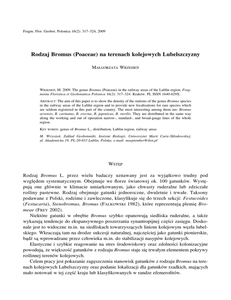 Rodzaj Bromus (Poaceae) na terenach kolejowych Lubelszczyzny