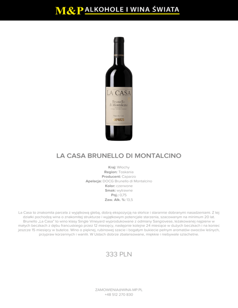 LA CASA BRUNELLO DI MONTALCINO 333 PLN