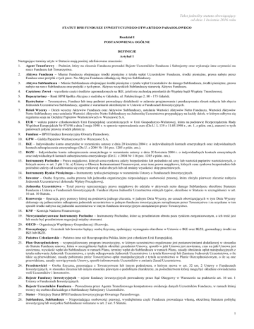 STATUT BPH FUNDUSZU INWESTYCYJNEGO OTWARTEGO PARASOLOWEGO