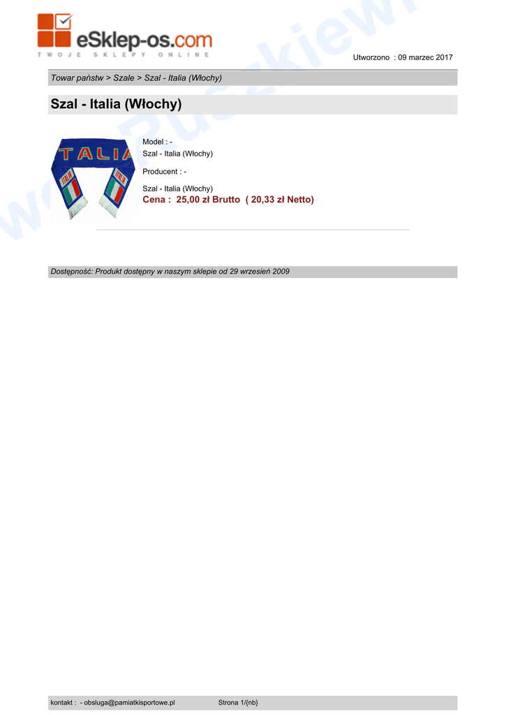z s u R Towar państw > Szale > Szal - Italia (Włochy) Szal - Italia (Włochy) w o e e i k Model : - Szal - Italia (Włochy) Producent : - Szal - Italia (Włochy) Cena : 25,00 zł Brutto ( 20,33 zł Netto) Dostępność: Produkt dostępny w naszym sklepie od 29 wrzesień 2009 kontakt : - [email protected] Strona 1/{nb} i w Utworzono : 09 marzec 2017