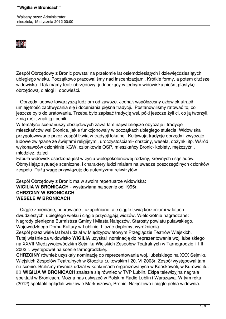 spektakl w Bronicach. Można nas usłyszeć w Polskim Radio Lublin i Warszawa. W tym roku