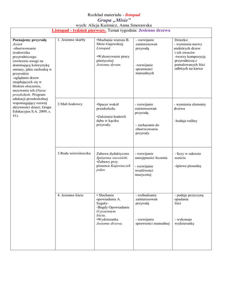 Listopad - tydzień pierwszy. Temat tygodnia: Jesienne drzewa