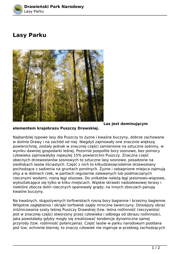 Drawieński Park Narodowy Lasy Parku Lasy Parku Las jest dominującym elementem krajobrazu Puszczy Drawskiej. Najbardziej typowe lasy dla Puszczy to żyzne i kwaśne buczyny, dobrze zachowane w dolinie Drawy i na zachód od niej. Niegdyś zajmowały one znacznie większą powierzchnię, zostały jednak w znacznej części zamienione na sztuczne sośniny, w wyniku dawniej gospodarki leśnej. Pozornie pospolite bory sosnowe, bez pomocy człowieka zajmowałyby najwyżej 15% powierzchni Puszczy. Znaczna część obecnych drzewostanów sosnowych to sztuczne lasy sosnowe, posadzone na siedliskach lasów liściastych. Część z nich to kilkudziesięcioletnie drzewostany pochodzące z sadzenia na gruntach porolnych. Żyzne i zabagnione miejsca zajmują olsy a w dolinach rzek, w partiach regularnie zalewanych lub podmaczanych rzecznymi wodami, rosną łęgi olszowe. Do unikatów należą łęgi jesionowo-wiązowe, wykształcające się tylko w kilku miejscach. Wąskie skrawki nadzalewowej terasy i niektóre zbocza dolin rzecznych opanowały grądy; na innych zboczach panują kwaśne buczyny. Na kwaśnych, skąpożywnych torfowiskach rosną bory bagienne i brzeziny bagienne. Wilgotne zagłębienia i okrajki torfowisk zajęły mroczne świerczyny. Dzisiejszy obraz zróżnicowania szaty leśnej Puszczy Drawskiej (tzw. leśna roślinność rzeczywista) jest w znacznej części stworzony przez człowieka i odbiega od obrazu roślinności, jaka powstałaby gdyby mogły się zrealizować tendencje dynamiczne samej przyrody (tzw. roślinność potencjalna). Część lasów w parku narodowym poddana jest tzw. ochronie biernej, to znaczy człowiek nie ingeruje w przebieg zachodzących 1/2 Drawieński Park Narodowy Lasy Parku w nich procesów. Duża cześć lasów, także w granicach parku, podlega tzw. przebudowie: przy pomocy umiejętnego wycinania i podsadzania drzew przekształca się ich skład gatunkowy na bliższy naturalnemu. Lasy poza Parkiem spełniają funkcje gospodarcze, to znaczy leśnicy hodują, pielęgnują i użytkują kolejne ich pokolenia. Stosują do tego cały arsenał środków, miedzy innymi tzw. rębnie zupełne i częściowe oraz tzw. cięcia pielęgnacyjne. Doświadczeni kilkusetletnią tradycją sztuki leśnej, starają się robić to z poszanowaniem leśnej przyrody, choć pogodzenie jej ochrony z użytkowaniem lasu jest zawsze pewnego rodzaju kompromisem Data wydruku: 09.03.2017 00:18:52 Adres URL: http://dpn.pl/lasy 2/2 Powered by TCPDF (www.tcpdf.org)