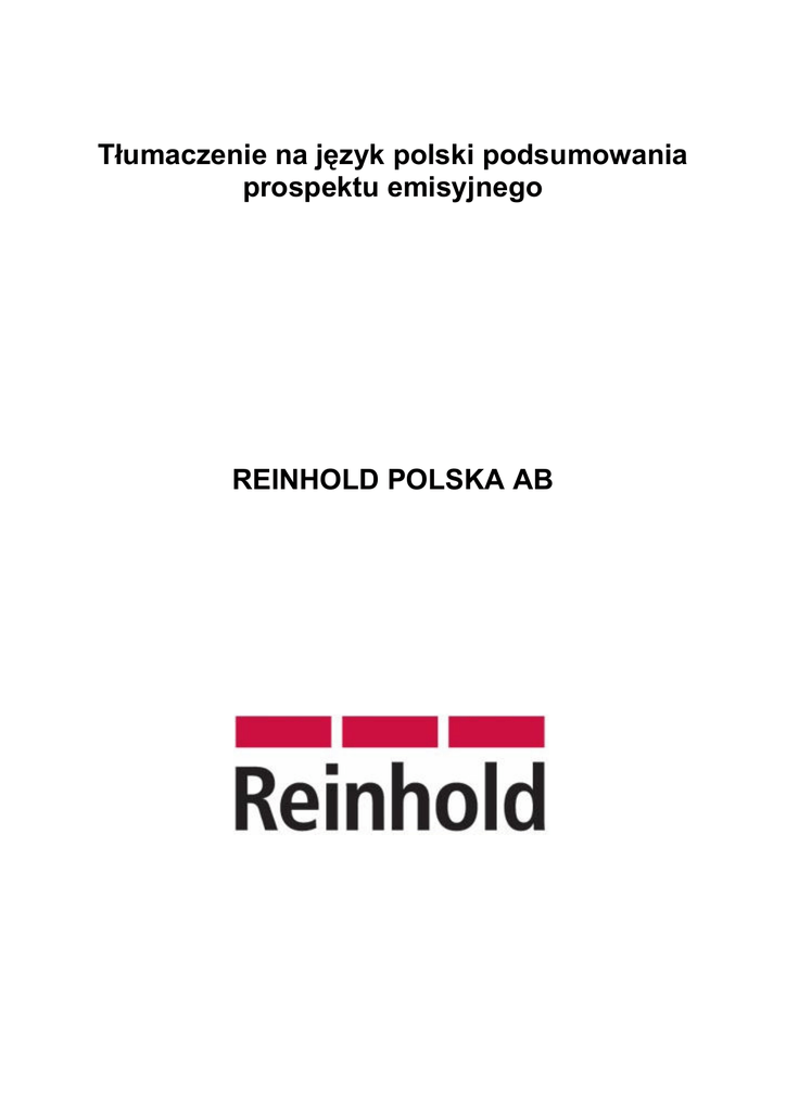 Podsumowanie w języku polskim do Prospektu Reinhold Polska AB