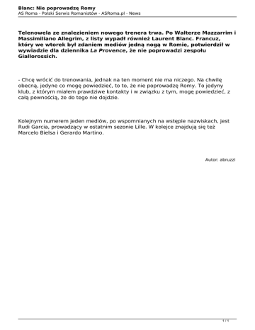 Blanc: Nie poprowadzę Romy