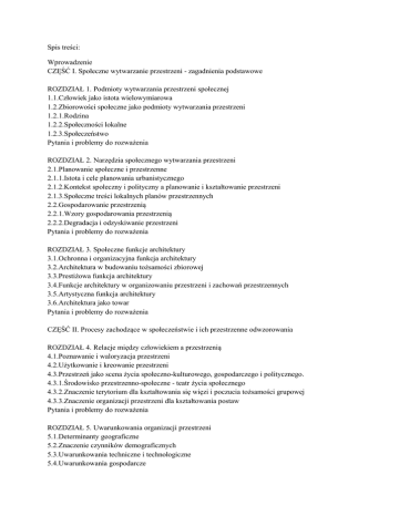 Wprowadzenie CZĘŚĆ I. Społeczne wytwarzanie przestrzeni
