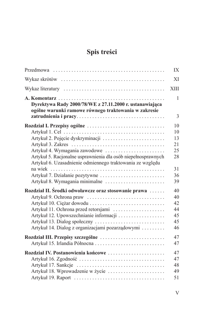 Spis treści Przedmowa . . . . . . . . . . . . . . . . . . . . . . . . . . . . . . . . . . . . . . . . . . . . IX Wykaz skrótów . . . . . . . . . . . . . . . . . . . . . . . . . . . . . . . . . . . . . . . . . XI Wykaz literatury . . . . . . . . . . . . . . . . . . . . . . . . . . . . . . . . . . . . . . . . XIII A. Komentarz . . . . . . . . . . . . . . . . . . . . . . . . . . . . . . . . . . . . . . . . . . Dyrektywa Rady 2000/78/WE z 27.11.2000 r. ustanawiająca ogólne warunki ramowe równego traktowania w zakresie zatrudnienia i pracy. . . . . . . . . . . . . . . . . . . . . . . . . . . . . . . . . . . 1 Rozdział I. Przepisy ogólne . . . . . . . . . . . . . . . . . . . . . . . . . . . . . . . Artykuł 1. Cel . . . . . . . . . . . . . . . . . . . . . . . . . . . . . . . . . . . . . . . . Artykuł 2. Pojęcie dyskryminacji . . . . . . . . . . . . . . . . . . . . . . . . . Artykuł 3. Zakres . . . . . . . . . . . . . . . . . . . . . . . . . . . . . . . . . . . . . Artykuł 4. Wymagania zawodowe . . . . . . . . . . . . . . . . . . . . . . . . Artykuł 5. Racjonalne usprawnienia dla osób niepełnosprawnych . Artykuł 6. Uzasadnienie odmiennego traktowania ze względu na wiek . . . . . . . . . . . . . . . . . . . . . . . . . . . . . . . . . . . . . . . . . . . . . Artykuł 7. Działanie pozytywne . . . . . . . . . . . . . . . . . . . . . . . . . . Artykuł 8. Wymagania minimalne . . . . . . . . . . . . . . . . . . . . . . . . 10 10 13 21 25 28 Rozdział II. Środki odwoławcze oraz stosowanie prawa . . . . . . . Artykuł 9. Ochrona praw . . . . . . . . . . . . . . . . . . . . . . . . . . . . . . . Artykuł 10. Ciężar dowodu . . . . . . . . . . . . . . . . . . . . . . . . . . . . . . Artykuł 11. Ochrona przed retorsjami . . . . . . . . . . . . . . . . . . . . . Artykuł 12. Upowszechnianie informacji . . . . . . . . . . . . . . . . . . . Artykuł 13. Dialog społeczny . . . . . . . . . . . . . . . . . . . . . . . . . . . . Artykuł 14. Dialog z organizacjami pozarządowymi . . . . . . . . . . 40 40 42 44 45 45 46 Rozdział III. Przepisy szczególne . . . . . . . . . . . . . . . . . . . . . . . . . . Artykuł 15. Irlandia Północna . . . . . . . . . . . . . . . . . . . . . . . . . . . . 47 47 Rozdział IV. Postanowienia końcowe . . . . . . . . . . . . . . . . . . . . . . . Artykuł 16. Zgodność . . . . . . . . . . . . . . . . . . . . . . . . . . . . . . . . . . Artykuł 17. Sankcje . . . . . . . . . . . . . . . . . . . . . . . . . . . . . . . . . . . Artykuł 18. Wprowadzenie w życie . . . . . . . . . . . . . . . . . . . . . . . Artykuł 19. Raport . . . . . . . . . . . . . . . . . . . . . . . . . . . . . . . . . . . . 47 47 48 49 51 3 31 36 39 V Spis treści Artykuł 20. Wejście w życie . . . . . . . . . . . . . . . . . . . . . . . . . . . . . Artykuł 21. Adresaci . . . . . . . . . . . . . . . . . . . . . . . . . . . . . . . . . . . 53 53 B. Orzecznictwo Trybunału Sprawiedliwości . . . . . . . . . . . . . . . . 55 I. Niepełnosprawność . . . . . . . . . . . . . . . . . . . . . . . . . . . . . . . . . . . . 1. Wyrok z 11.7.2006 r., C-13/05, Sonia Chacón Navas przeciwko Eurest Colectividades SA (Zb. Orz. 2006, s. I-6467) . . . . . . . . . . . . . . . . . . . . . . . . . . . . . . . . . . . . . . . . . 2. Wyrok z 17.7.2008 r., C-303/06, S. Coleman przeciwko Attridge Law i Steve Law (Zb. Orz. 2008, s. I-5603) . . . . . . . 57 II. Orientacja seksualna . . . . . . . . . . . . . . . . . . . . . . . . . . . . . . . . . 1. Wyrok z 1.4.2008 r., C-267/06, Tadao Maruko przeciwko Versorgungsanstalt der deutschen Bühnen (Zb. Orz. 2008, s. I-1757) . . . . . . . . . . . . . . . . . . . . . . . . . . . . . . . . . . . . . . . . . 2. Wyrok z 10.5.2011 r., C-147/08, Jürgen Römer przeciwko Freie und Hansestadt Hamburg (niepubl., dostępny na stronie: curia.europa.eu) . . . . . . . . . . . . . . . . . . . . . . . . . . . . . 70 III. Wiek . . . . . . . . . . . . . . . . . . . . . . . . . . . . . . . . . . . . . . . . . . . . . . 1. Wyrok z 22.11.2005 r., C-144/04, Werner Mangold przeciwko Rüdiger Helm (Zb. Orz. 2005, s. I-9981) . . . . . . . 2. Wyrok z 16.10.2007 r., C-411/05, Félix Palacios de la Villa przeciwko Cortefiel Servicios SA (Zb. Orz. 2007, s. I-8531) . 3. Wyrok z 23.9.2008 r., C-427/06, Birgit Bartsch przeciwko Bosch und Siemens Hausgeräte (BSH) Altersfürsorge GmbH (Zb. Orz. 2008, s. I-7245) . . . . . . . . . . . . . . . . . . . . . . . . . . . . 4. Wyrok z 5.3.2009 r., C-388/07, The Queen, na wniosek The Incorporated Trustees of the National Council for Ageing (Age Concern England) przeciwko Secretary of State for Business, Enterprise and Regulatory Reform (Zb. Orz. 2009, s. I-1569) . . . . . . . . . . . . . . . . . . . . . . . . . . . . 5. Wyrok z 18.6.2009 r., C-88/08, David Hütter przeciwko Technische Universität Graz (Zb. Orz. 2009, s. I-5325) . . . . 6. Wyrok z 12.1.2010 r., C-341/08, Domnica Petersen przeciwko Berufungsausschuss für Zahnärzte für den Bezirk Westfalen-Lippe (Zb. Orz. 2010, s. I-47) . . . . . . . 7. Wyrok z 12.1.2010 r., C-229/08, Colin Wolf przeciwko Stadt Frankfurt am Main (Zb. Orz. 2010, s. I-1) . . . . . . . . . . 8. Wyrok z 19.1.2010 r., C-555/07, Seda Kücükdeveci przeciwko Swedex GmbH & Co. KG (Zb. Orz. 2010, s. I-365) . . . . . . . . . . . . . . . . . . . . . . . . . . . . . . . . . . . . . . . . . . 87 VI 57 64 70 78 87 93 99 103 109 114 120 126 Spis treści 9. Wyrok z 12.10.2010 r., C-499/08, Ingeniørforeningen i Danmark przeciwko Region Syddanmark (Zb. Orz. 2010, s. I-9343) . . . . . . . . . . . . . . . . . . . . . . . . . . . . . . . . . . . . . . . . . 10.Wyrok z 12.10.2010 r., C-45/09, Gisela Rosenbladt przeciwko Oellerking Gebäudereinigungsges. mbH (Zb. Orz. 2010, s. I-9391) . . . . . . . . . . . . . . . . . . . . . . . . . . . . 11.Wyrok z 18.11.2010 r., C-250/09 i C-268/09, Vasil Ivanov Georgiev przeciwko Tehnicheski universitet – Sofia, filial Plovdiv (Zb. Orz. 2010, s. I-11869) . . . . . . . . . . . . . . . . . . . . 12.Wy