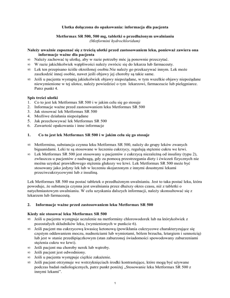 2. Informacje ważne przed zastosowaniem leku Metformax SR 500