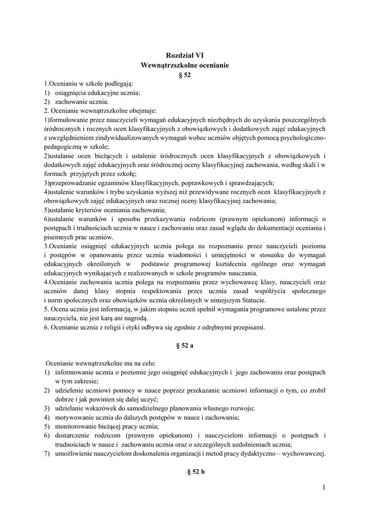 1 Rozdział VI Wewnątrzszkolne ocenianie