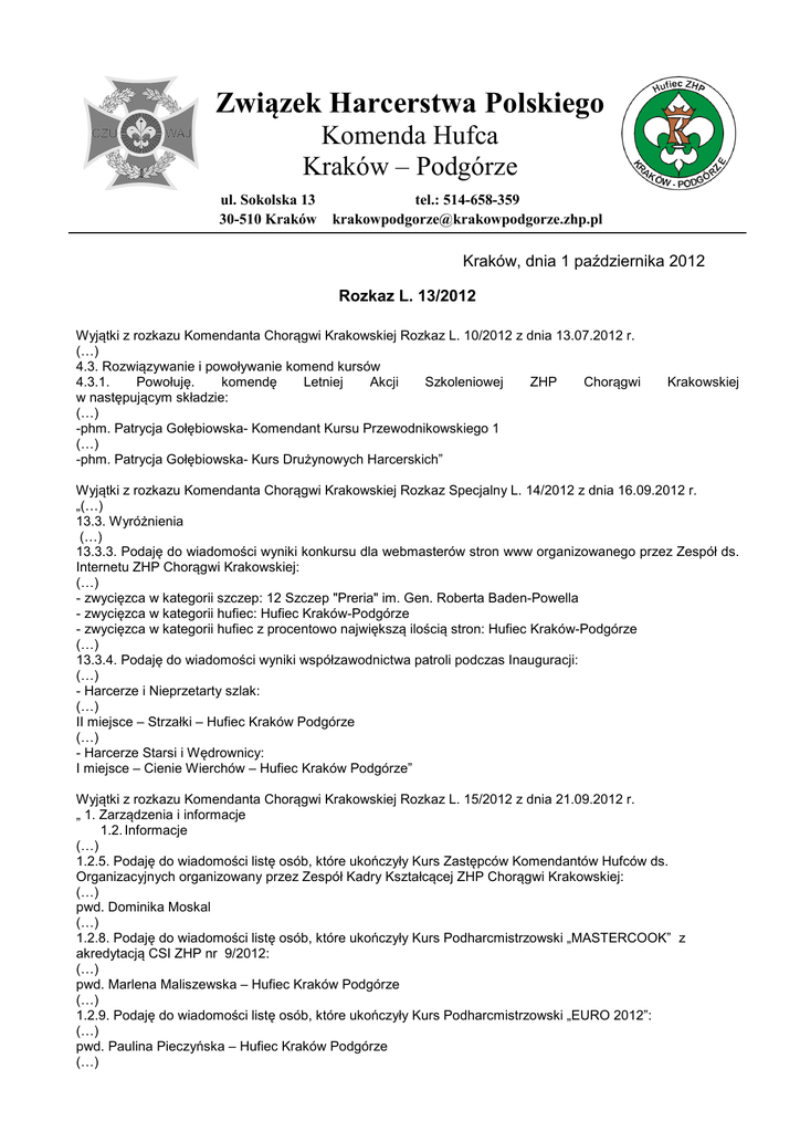 RL 13/2012 (01.10.12) pdf - Hufiec Kraków - Podgórze