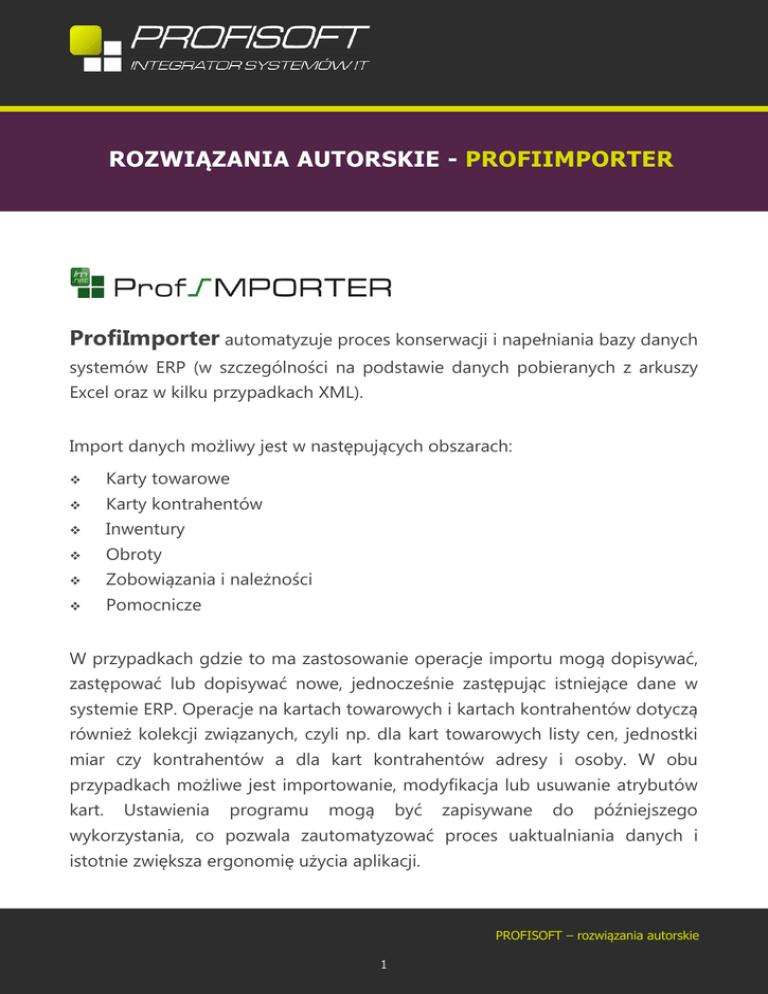 ROZWIĄZANIA AUTORSKIE - PROFIIMPORTER