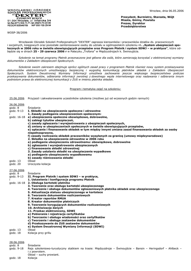 Wrocław, dnia 06.05.2006 Prezydent, Burmistrz, Starosta, Wójt