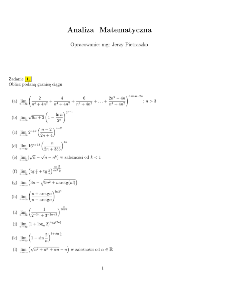 Oblicz (bez wykorzystywania reguły de l’Hospitala) podane granice funkcji