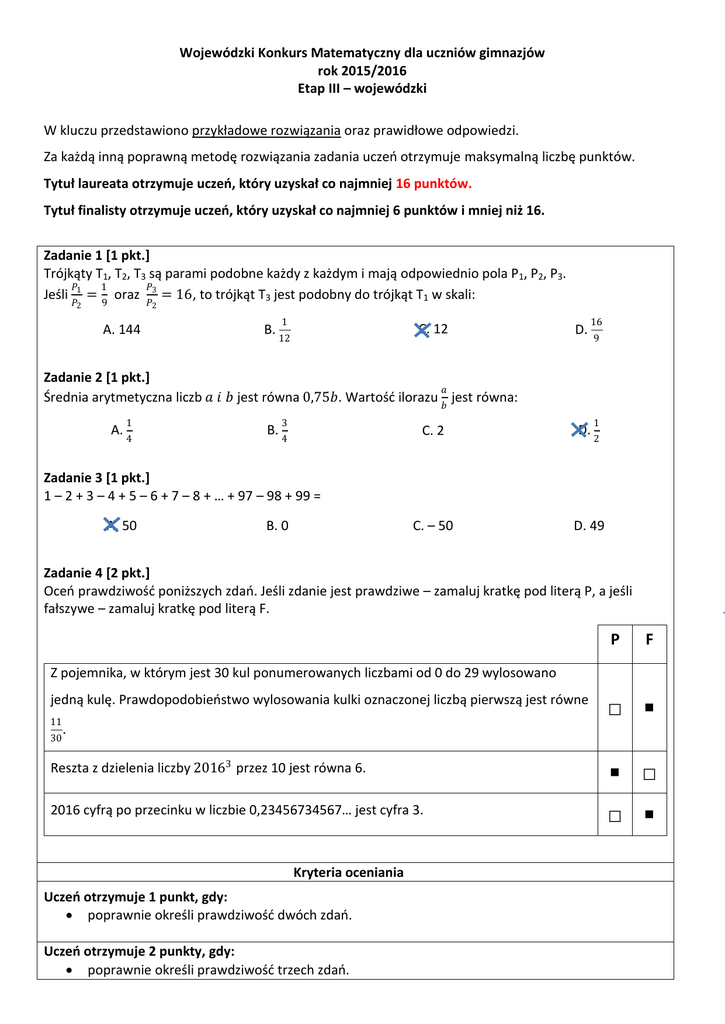 Page 1 Wojewódzki Konkurs Matematyczny dla uczniów gimnazjów