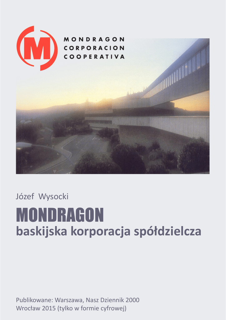 Józef Wysocki Mondragon baskijska korporacja spółdzielcza Publikowane: Warszawa, Nasz Dziennik 2000 Wrocław 2015 (tylko w formie cyfrowej) Okładka Gmach spółdzielczego banku systemu mondragońskiego: Caja Laboral Popular, zaliczany do najlepszych instytucji finansowych świata. Bank okazał się odporny na kryzys finansowy 2008 roku. Wraz ze spółdzielczą ubezpieczalnią (system ubezpieczeń wzajemnych) Lagun Aro, tworzy czołówkę Finansowej Grupy Spółdzielczej Korporacji Mondragonu. Źródło tekstu „Nasz Dziennik”, 28 kwietnia, 5 maja i 12 maja 2000 r. Zmiana tytułu Tytuł artykułu został zmieniony w stosunku do brzmienia oryginalnego: „Mondragon, czyli akcjonariat pracowniczy po baskijsku”. Wprawdzie akcjonariat pracowniczy i spółdzielczość pracy są instytucjami pokrewnymi, jednakże istnieją tu różnice, dzięki którym zalicza się je do oddzielnych grup własności pracowniczej. Spółdzielczość pracy jest mocniejszą formą własności pracowniczej niż akcjonariat. W przeciwieństwie do akcjonariatu nie dopuszcza ona udziałów zewnętrznych – niepracowniczych. Istnieją również 100% spółki pracownicze, co jednak nie jest w systemie akcjonariatu wymagane. Spółką pracowniczą jest już spółka, w której udziały pracownicze przekraczają 50%, Gdy udziały te są mniejsze od 50%, dalej mamy do czynienie z akcjonariatem pracowniczym - tzw. mniejszościowym. Główną cechą odróżniająca spółdzielnię pracy od akcjonariatu jest istnienie w niej dwóch typów własności: funduszu udziałowego, składającego się z indywidualnych udziałów pracowników-właścicieli (tak jak w akcjonariacie), i funduszu zasobowego będącego w ich władaniu kolektywnym. Fundusz ten ułatwia pokoleniową zmianę własności w spółdzielni. Wspólną, żelazną zasadą zarówno akcjonariatu jak i spółdzielni jest niemożność wycofania udziałów w trakcie zatrudnienia. Uzupełnienie Artykuł Józefa Wysockiego opatrzyłem własnym, współczesnym uzupełnieniem. Nawiązania Nawiązania do mondragońskiej spółdzielczości konsumenckiej znajdzie Czytelnik w innej broszurze „Własność pracownicza w handlu” (xxxx). Jan Koziar lipiec, 2015 Spis treści 1. Wstęp 2. Dwa cuda 3. Do wyboru: stereotypy albo fakty 4. Ksiądz Jose Maria Arizmendiarrieta 5. Sami zbudujemy fabrykę! 6. Jest rok 1956 7. „Tajemnice” mondragońskiego sukcesu Płace – temat zawsze drażliwy Wkład kapitałowy pracownika Dystrybucja zysków System odpowiedzialności 8. Struktura organizacyjna pojedynczej spółdzielni 9. Zrzeszenie spółdzielcze Mondragon jako organizm gospodarczy 10. Caja Laboral Popular 11. Kontrakt Przynależności 12. Wydział Konsultacyjny ds. Zarządzania 13. Pomocna dłoń wyciągnięta do rolników 14. Ekspansja Mondragonu 15. W odwecie za Samosierrę Mondragon - uzupełnienie 1. Wstęp Mondragon to kilkunastotysięczne miasto w Baskonii (północna Hiszpania), które robi światową karierę dzięki specyficznie zorganizowanemu systemowi spółdzielni. Poczynając od roku 1956, od skromnej, 23-osobowej spółdzielni, spółdzielczość mondragońska odnosi same sukcesy. Obecnie Mondragońskie Zrzeszenie Spółdzielni (Mondragon Corporacion Cooperativa – MCC) tworzy ok. 100 spółdzielni (co roku przybywa ich kilka) o bardzo zróżnicowanym profilu działalności. Są to: zakłady przemysłowe (np. 3 miejsce w Europie w produkcji podzespołów samochodowych), produkcja sprzętu gospodarstwa domowego, zrobotyzowanych obrabiarek, elektroniki, przetwórstwo rolno-spożywcze, supermarkety (ale w ramach spółdzielni spożywców), biura projektowe, rybołówstwo, własna służba zdrowia, szkolnictwo średnie i wyższe, a przede wszystkim własny bank, kasy pożyczkowe, towarzystwo leasingowe, towarzystwo ubezpieczeniowe. W ich kręgu w dużym stopniu zamyka się obieg pieniądza. W literaturze dosyć często spotyka się określenie MCC jako „mondragoński eksperyment”. Jest to o tyle nieuzasadnione, że „eksperyment”, który funkcjonuje już 44 lata, przestał być eksperymentem. W roku 1998 pracowało w Zrzeszeniu 35 tys. osób1 a produkcja sprzedana zamknęła się sumą 5 miliardów dolarów, zaś aktywa banku i ubezpieczalni wynosiły 7,5 miliarda dolarów. Twórcą mondragońskiej spółdzielczości był skromny ksiądz Jose Maria Arizmendiarrieta, który oparł stosunki pracy i relację kapitał – praca na idei akcjonariatu pracowniczego. Według społecznej nauki Kościoła. 2. Dwa cuda Do Mondragonu jak do Mekki zjeżdżają ekonomiści z całego świata, by przekonać się naocznie jak w praktyce funkcjonuje tamtejsza własność pracownicza, która zmienia Baskonię – jedną z najuboższych kiedyś krain Europy Zachodniej, w kraj dobrobytu. Mondragon2 to, bez przesady, cud gospodarczy, jeśli się zważy, z jakiego pułapu ekonomicznego startowała pierwsza mondragońska spółdzielnia. Z „cudem mondragońskim’’ jest ściśle związany „polski cud’’, który polega na tym, że sukces Mondragonu jest nierozpoznany przez polskie media, partie polityczne, związki zawodowe, nie funkcjonuje w programach nauczania wyższych uczelni ekonomicznych i menedżerskich. Dlatego też, rozpatrując historię powstania, rozwoju i funkcjonowania Mondragonu warto odnieść te rozważania do sytuacji w Polsce. Wówczas, jak na dłoni, ukaże się „sukces’’ światłych liberałów, którzy wykreowali nasze programy „restrukturyzacyjne’’ z pominięciem sprawdzonych wzorców. Takimi są: amerykański akcjonariat pracowniczy, tzw. ESOP-y (na ich temat „Nasz Dziennik’’ opublikował 25 lutego br. tekst Narodowego Centrum Własności Pracowniczej w Stanach Zjednoczonych, pt. „Własność Pracownicza’’ oraz cykl artykułów Jana Koziara, które Obecnie (rok 2011) ok. 85 tys. osób (J.K.). Tu i w dalszej kolejności całe Mondragońskie Zrzeszenie Spółdzielni nazywane jest krótko „Mondragonem”. Tak też prak