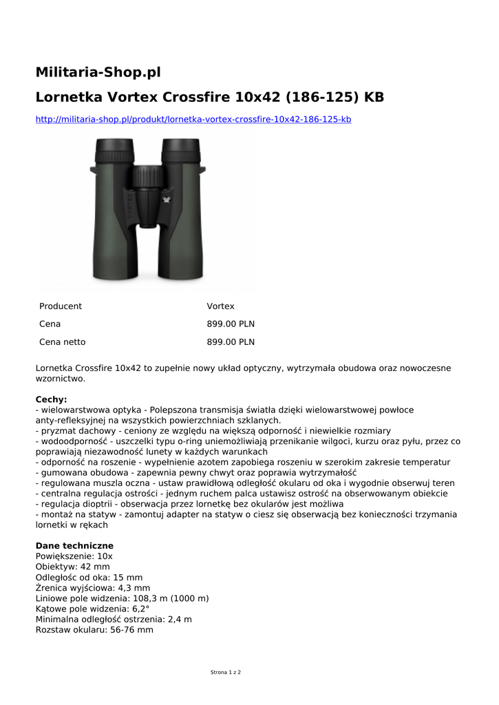 Militaria-Shop.pl Lornetka Vortex Crossfire 10x42 (186
