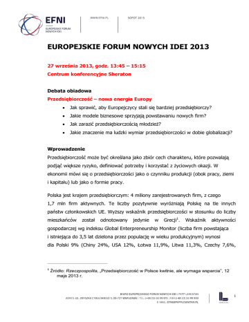 Przedsiębiorczość – nowa energia Europy - EFNI