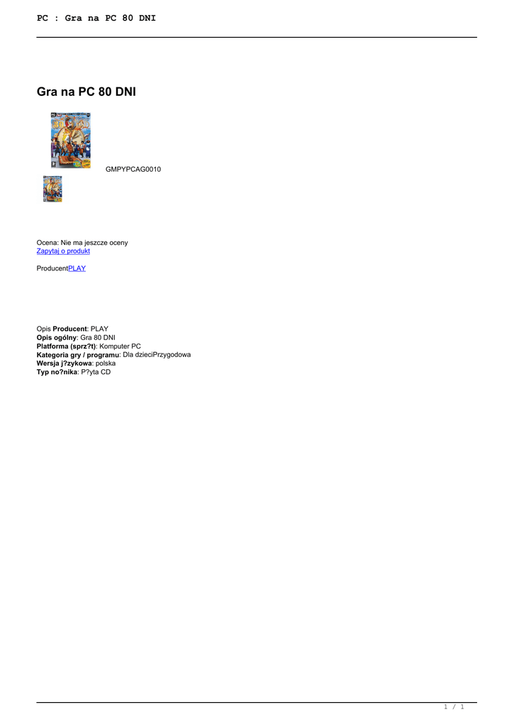 PC : Gra na PC 80 DNI Gra na PC 80 DNI GMPYPCAG0010 Ocena: Nie ma jeszcze oceny Zapytaj o produkt ProducentPLAY Opis Producent: PLAY Opis ogólny: Gra 80 DNI Platforma (sprz?t): Komputer PC Kategoria gry / programu: Dla dzieciPrzygodowa Wersja j?zykowa: polska Typ no?nika: P?yta CD 1 / 1 Powered by TCPDF (www.tcpdf.org)