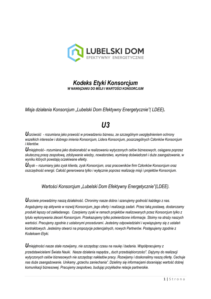 Kodeks Etyki Konsorcjum - Lubelski Dom Efektywny Energetycznie