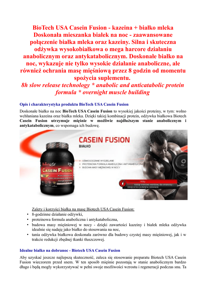 BioTech USA Casein Fusion - kazeina + białko mleka Doskonała