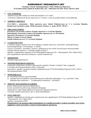 inne sprawy zgodnie z postanowieniami regulaminowymi XVII Dolnośląskich Igrzysk LZS w 2016 r.