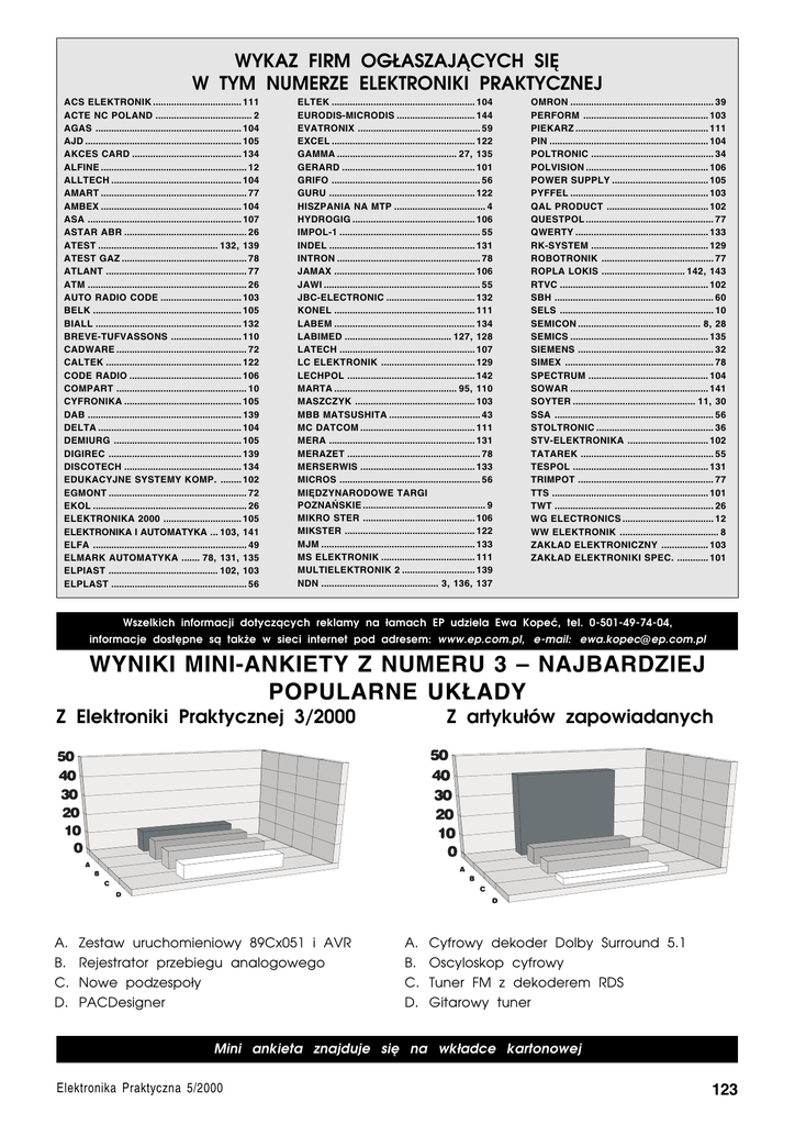wykaz firm ogłaszających się w tym numerze elektroniki praktycznej