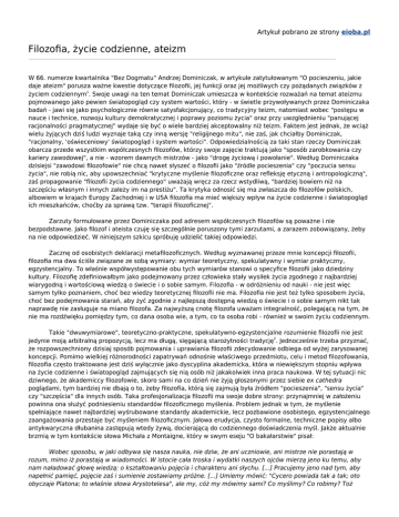 życiem codziennym1. Swoje uwagi na ten temat Dominiczak umieszcza w kontekście rozważań na temat ateizmu