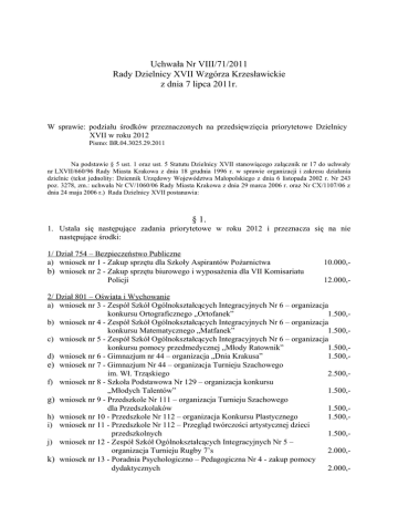 Uchwała Nr VIII/71/2011 Rady Dzielnicy XVII Wzgórza Krzesławickie