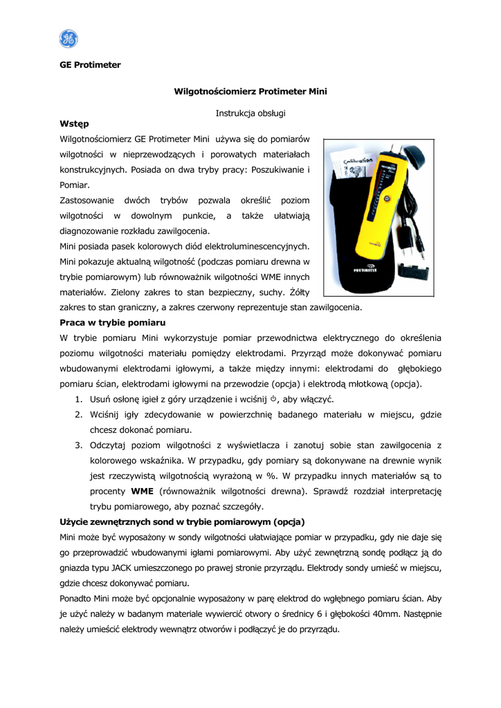 GE Protimeter Wilgotnościomierz Protimeter Mini Instrukcja