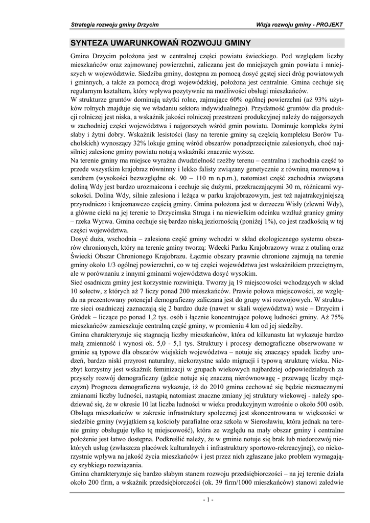 SYNTEZA UWARUNKOWAŃ ROZWOJU GMINY