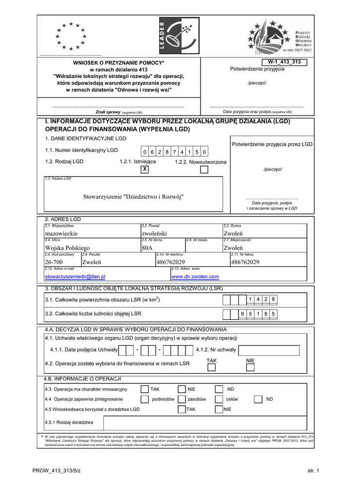 Stowarzyszenie "Dziedzictwo i Rozwój" I. INFORMACJE