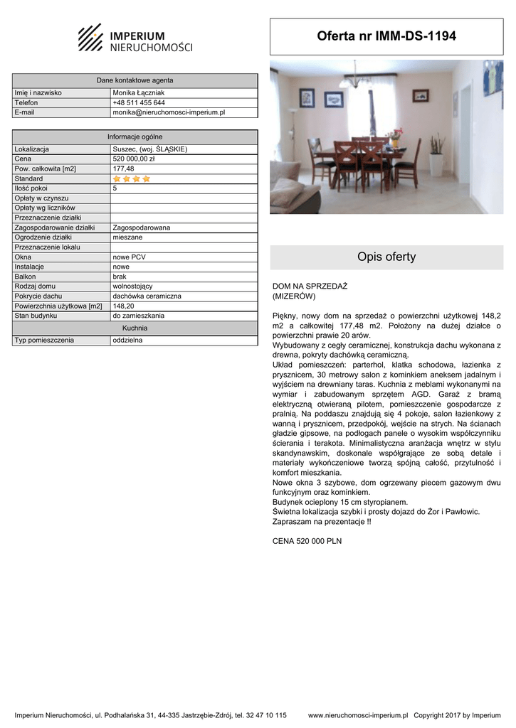 Oferta nr IMM-DS-1194 - Imperium Nieruchomości