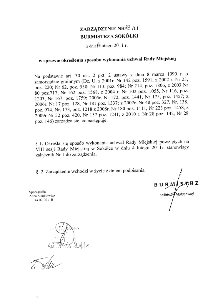 ZARZĄDZENIE NR dJ /11 BURMISTRZA SOKÓŁKI z dnia