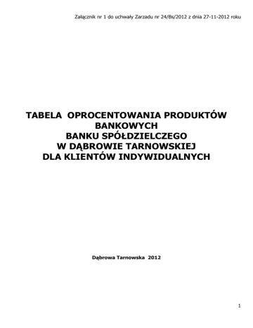 Tabela oprocentowania dla klientów indywidualnych 2012 r.