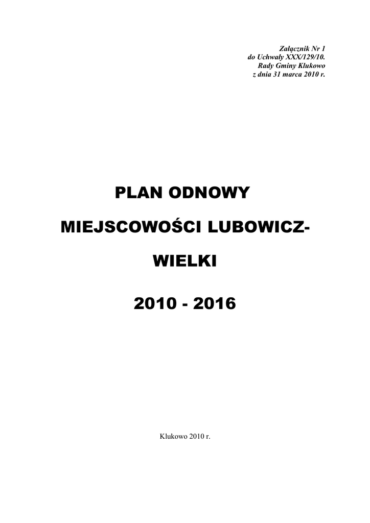 PLAN ODNOWY MIEJSCOWOŚCI LUBOWICZ- WIELKI 2010