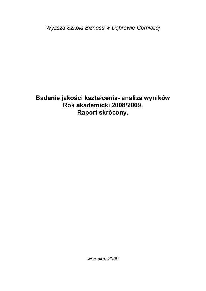 Badanie jakości kształcenia - Wyższa Szkoła Biznesu w Dąbrowie