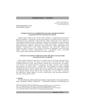 Tłokowe silniki spalinowe, rozruch, rozrusznik elektryczny, rozrusznik pneumatyczny PSZCZÓŁKOWSKI Józef1 TRAWIŃSKI Grzegorz2 NAPĘDZANIE WAŁU KORBOWEGO SILNIKA ROZRUSZNIKIEM ELEKTRYCZNYM I PNEUMATYCZNYM Moment oporu silnika nie ma wartości stałej. Wynika to z występowania sił gazowych (przemian ładunku w cylindrach) oraz mas poruszających się ruchem posuwisto-zwrotnym. Scharakteryzowano napędzanie wału korbowego silnika spalinowego przez elektryczny i pneumatyczny układ rozruchowy. Wskazano cechy procesu wynikające ze zmian momentu oporu silnika oraz właściwości źródła energii – układu rozruchowego. Porównano stopień nierównomierności prędkości obrotowej wału korbowego silnika napędzanego tymi układami. Przedstawiono wyniki badań napędzania wału korbowego silnika przez elektryczny układ rozruchowy oraz analizę porównawcza napędzania wału korbowego silnika. Omówiono zmiany charakterystyki mocy i parametrów pracy rozrusznika elektrycznego i pneumatycznego pod wpływem zmiany temperatury. ENGINE CRANKSHAFT DRIVING WITH THE HELP OF ELECTRIC AND PNEUMATIC STARTER Piston engine resistance torque has not a constant value. It is because of gaseous forces existing (charge processes) and masses moving forward and backward. The engine crankshaft driving by electric and pneumatic starting unit is characterised. The features of its process are pointed being the consequence of engine resistance torque changes and properties of energy source – starting unit. The inequality of engine crankshaft rotational speed driven with the help of these units is compared. The test results of engine crankshaft driving by electric starting unit are presented and the comparative analysis of crankshaft driving with the help of these starting units as well. There is discussed the temperature change influence on power characteristics and operating parameters of electric and pneumatic starter. 1. WSTĘP Rozruch tłokowego silnika spalinowego polega na jego przejściu ze stanu spoczynku do stanu wypełniania funkcji uŜytkowych – wytwarzania momentu sił (obrotowego) na 1 Wojskowa Akademia Techniczna, Wydział Mechaniczny, 00-908 Warszawa, ul. S. Kaliskiego 2. Tel.: + 48 22 683 72 06, Fax.: +48 22 683 71 21, E-mail: [email protected] Wojskowa Akademia Techniczna, Wydział Mechaniczny, 00-908 Warszawa, ul. S. Kaliskiego 2. Tel.: + 48 22 683 70 46, Fax.: +48 22 683 71 21, E-mail: [email protected] 2 3500 Józef PSZCZÓŁKOWSKI, Grzegorz TRAWIŃSKI pokonanie oporów własnych ruchu celem podtrzymania działania i przekazywania momentu do odbiorników zewnętrznych. W praktyce jedyną metodą zainicjowania samoczynnego powtarzania procesów roboczych w cylindrach silnika jest napędzanie jego wału korbowego przez układ rozruchowy. Zadaniem układu rozruchowego jest więc zrównowaŜenie momentu oporów ruchu silnika i nadanie wałowi korbowemu niezbędnej dla jego uruchomienia prędkości obrotowej. Wartość wymaganej dla zaistnienia rozruchu minimalnej prędkości obrotowej wzrasta wraz ze spadkiem temperatury. Dlatego szczególnie wysokie wymagania w zakresie skuteczności działania są stawiane układom rozruchowym w warunkach obniŜonej temperatury otoczenia i silnika. Przyczyny trudności uruchomienia silników, zarówno o zapłonie samoczynnym jak i iskrowym, w niskiej temperaturze otoczenia są analogiczne. Jako konsekwencja zasysania do cylindrów wychłodzonego powietrza zmniejszeniu ulegają wartości parametrów termodynamicznych spręŜanego ładunku powietrza – temperatury i ciśnienia (zwłaszcza silniki o ZS). Wskutek obniŜenia temperatury i zwiększenia lepkości paliwa pogorszeniu ulegają charakterystyki jego rozpylenia (dokładność i jednorodność), co oczywiście skutkuje spowolnieniem parowania, tworzenia i zapłonu mieszanki palnej. Drugą przyczyną trudnego rozruchu silników w niskiej temperaturze jest obniŜenie prędkości obrotowej napędzania wału korbowego przez układ rozruchowy. Wynika to z wpływu temperatury na lepkość olejów smarujących. Skutkiem zaś jest zwiększenie momentu oporu silnika. Równocześnie następuje zmniejszenie mocy układu rozruchowego wywołane, w przypadku elektrycznego układu rozruchowego, zwiększeniem rezystancji wewnętrznej i obniŜeniem pojemności uŜytecznej akumulatora kwasowego. Podkreślić naleŜy, Ŝe prędkość obrotowa wału korbowego, zaleŜna od mocy układu rozruchowego i momentu oporu silnika, jest podstawowym czynnikiem wymuszenia dla procesów rozruchu silników. Znanym jest fakt, Ŝe wartości chwilowe rozruchowego momentu oporu silnika i prędkości obrotowej wału korbowego napędzanego przez rozrusznik zmieniają się w dość znacznym zakresie. Powodują one znaczne zmniejszanie wartości prędkości obrotowej w okresach zbliŜania się tłoka do połoŜenia GMP, co niekorzystnie wpływa na parametry termodynamiczne spręŜanego w cylindrze ładunku powietrza i charakterystykę wtryskiwania paliwa. Stopień nierównomierności prędkości chwilowej w fazie wstępnej rozruchu jest zaleŜny od liczby cylindrów silnika i mocy układu rozruchowego, a więc pośrednio od średniej wartości prędkości obrotowej wału korbowego, oraz cech jego działania. Łatwo jest wykazać, Ŝe właściwości rozruchowe silnika spalinowego napędzanego przez rozrusznik zaleŜne są nie tylko od wartości średniej prędkości obrotowej, ale takŜe od dynamiki napędzania wału, a więc od przebiegu zmian chwilowej prędkości obrotowej. Szczególnie istotna jest jej wartość w otoczeniu GMP, a więc w okresie wtryskiwania paliwa, gdyŜ ma to bezpośredni wpływ na charakterystykę jego rozpylenia oraz stan ładunku powietrza. Dlatego charakterystyka procesu napędzania wału korbowego przez układ rozruchowy daje moŜliwość oceny wpływu tego układu, jego właściwości na przebieg rozruchu silnika, a stąd i wykazywane właściwości rozruchowe. Układ rozruchowy elektryczny oraz pneumatyczny n