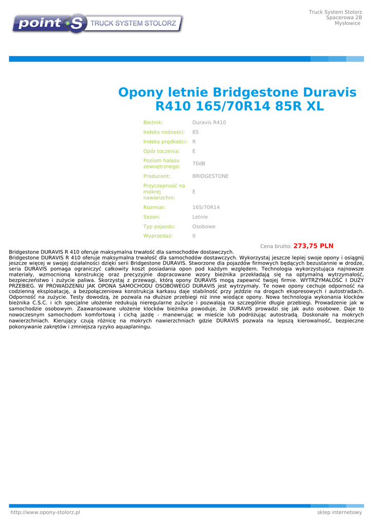 Opony letnie Bridgestone Duravis R410 165 - Opony