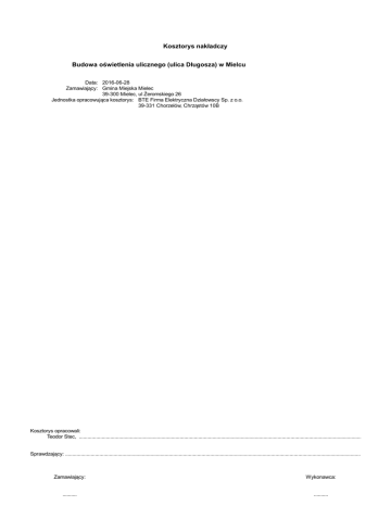 Kosztorys nakładczy Budowa oświetlenia ulicznego (ulica Długosza