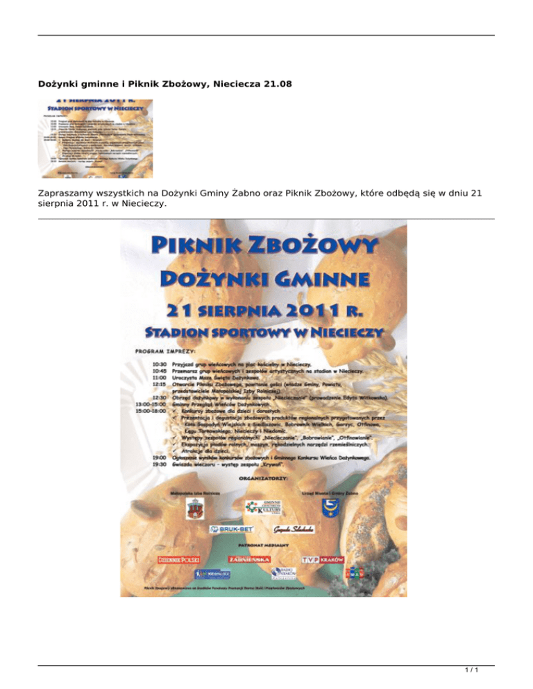 Dożynki gminne i Piknik Zbożowy, Nieciecza 21.08 Zapraszamy
