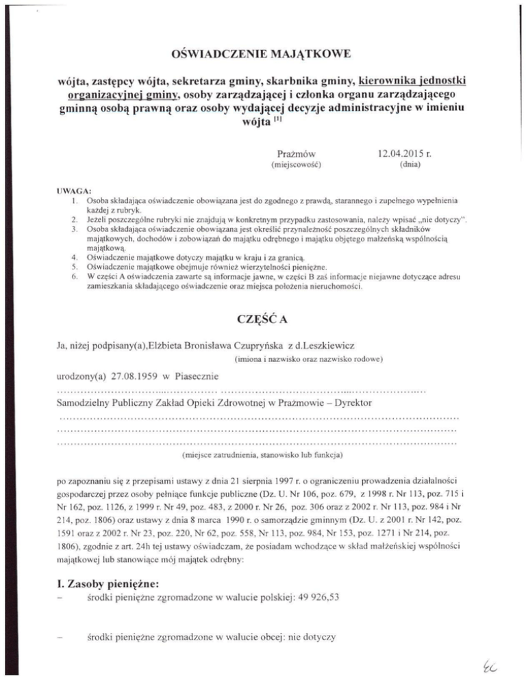 1. Osoba składająca oświadczenie obowiązana jest do zgodnego z prawdą, starannego i zupełnego wypełnienia