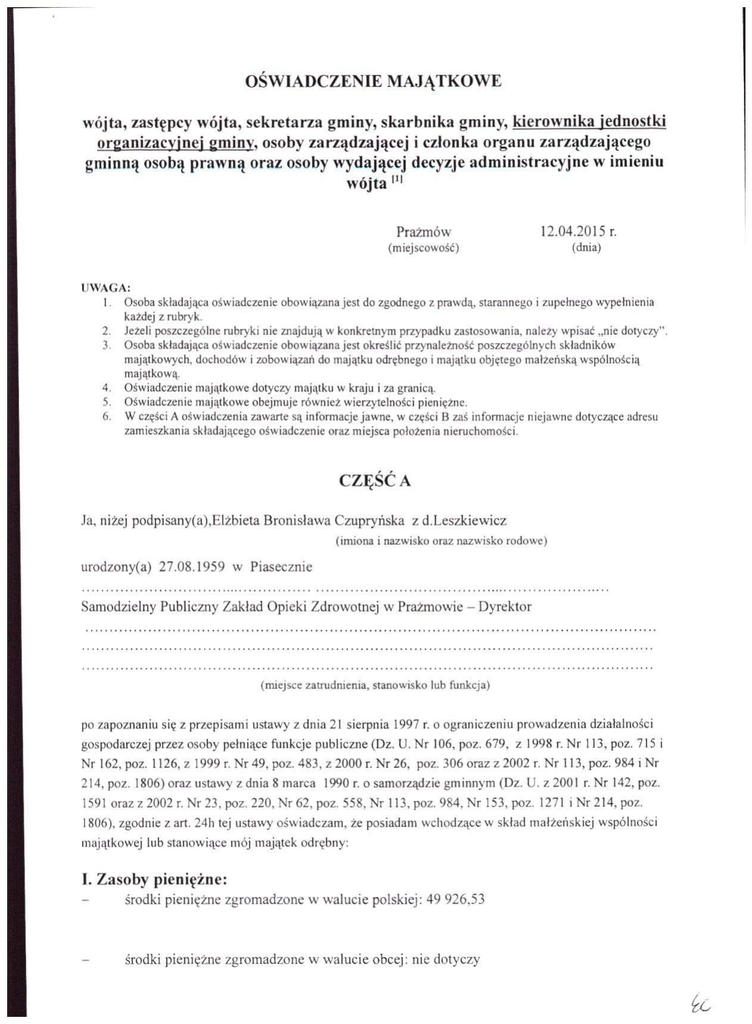 Ja. niżej podpisany(a),Elżbieta Bronisława Czupryńska z d.Leszkiewicz