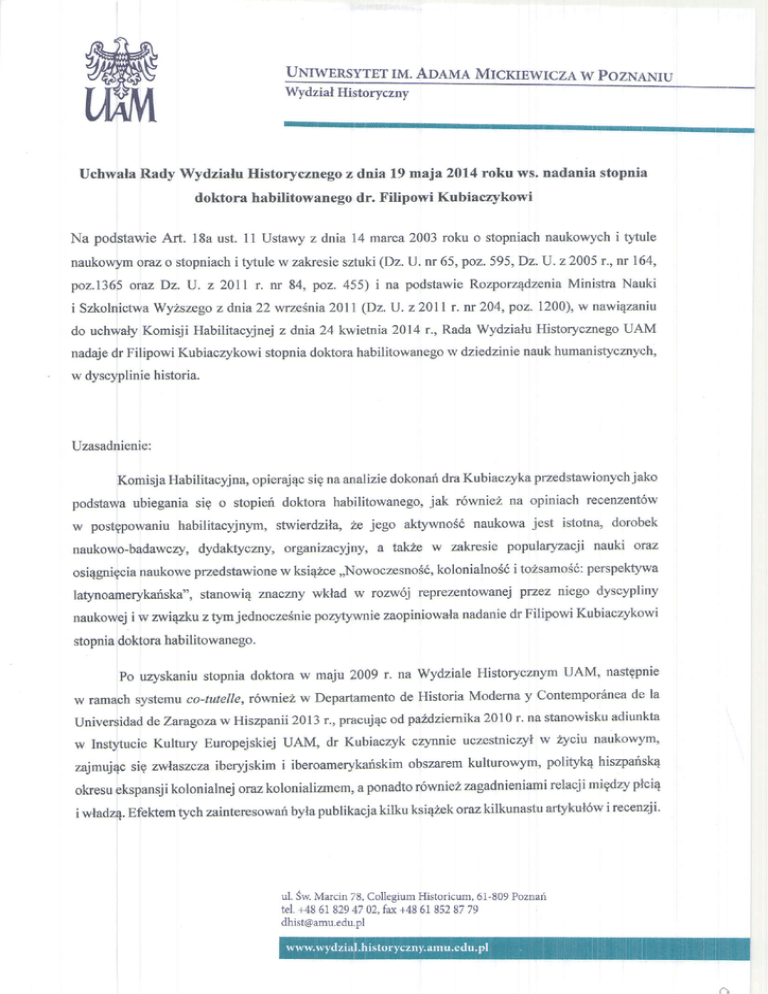 dr hab. Filip Kubiaczyk - uchwała Rady Wydziału
