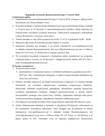 Regulamin Jarmarku Bożonarodzeniowego w Tczewie 2016 I
