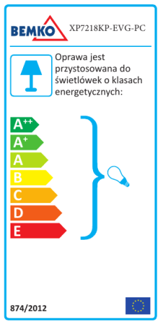XP7218KP-EVG-PC Oprawa jest przystosowana do świetlówek o klasach energetycznych: A++ A+ A B C D E 874/2012