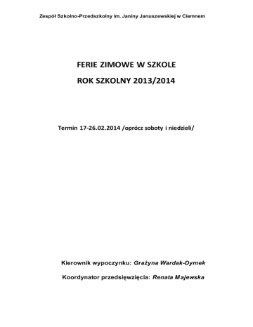 program ferii zimowych w szkole - zespół szkolno