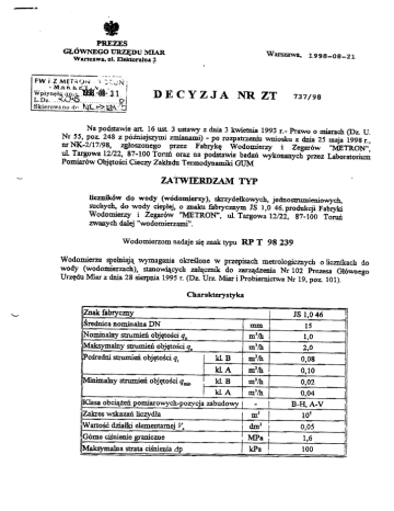 nr NK-2/17l98, 4loszoncgo vtzez rabrykg wodomierzy i zegui*