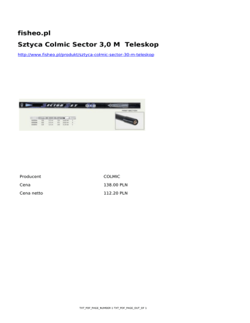 fisheo.pl Sztyca Colmic Sector 3,0 M Teleskop http://www.fisheo.pl/produkt/sztyca-colmic-sector-30-m-teleskop Producent COLMIC Cena 138.00 PLN Cena netto 112.20 PLN TXT_PDF_PAGE_NUMBER 1 TXT_PDF_PAGE_OUT_OF 1